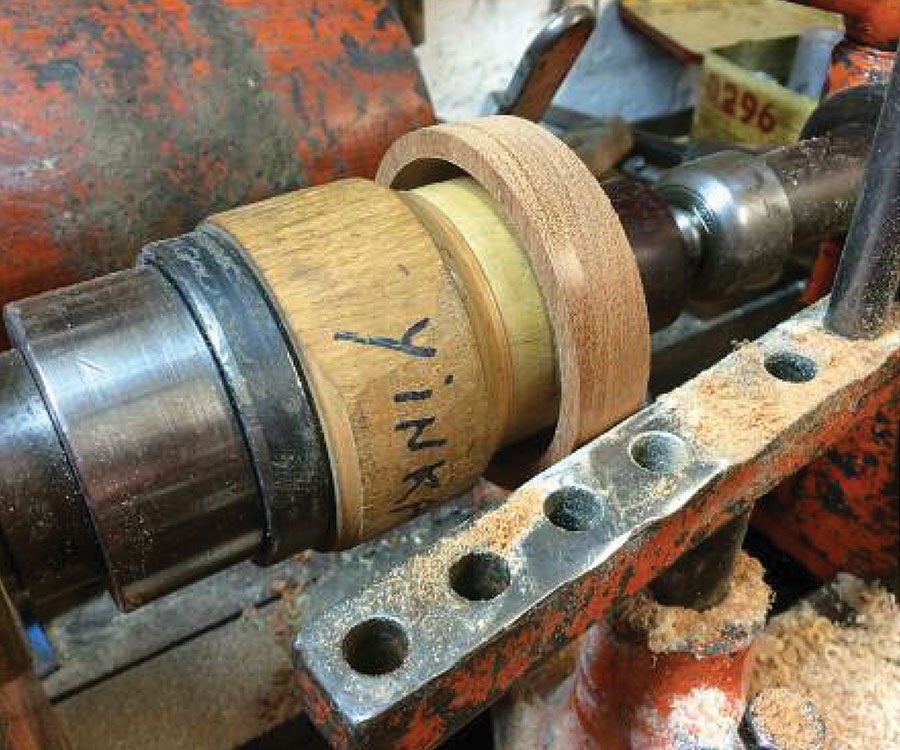 The basic shape was first turned from a piece of wood, with the inscription drawn and carefully cut into its surface.